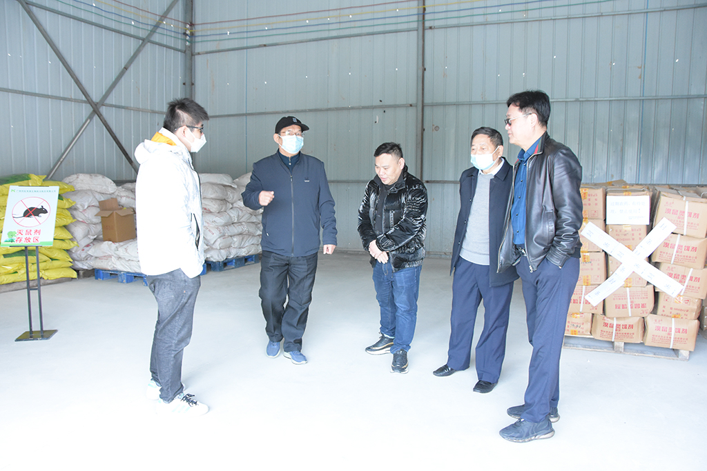 專家組一行來到廣西科虹公司的“應(yīng)急儲備庫”基地,詳細(xì)了解了公司資質(zhì)、病媒生物防制物資儲備、專職人員配備以及業(yè)務(wù)開展情況。現(xiàn)場檢查倉庫防制農(nóng)藥堆放是否符合規(guī)定,防制設(shè)施設(shè)備是否符合要求,相關(guān)管理制度是否健全。在檢查過程中,專家組對廣西科虹公司近年來的高速發(fā)展和開展病媒生物防制工作所取得的成績給予了充分肯定,同時也給公司病媒生物防制工作提出了寶貴的意見、建議。