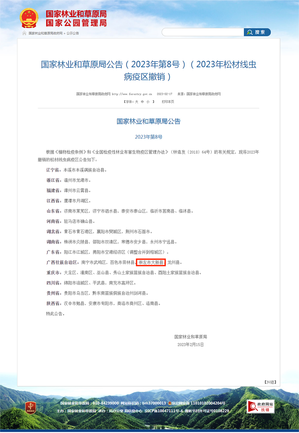 ▲國(guó)家林業(yè)和草原局公告