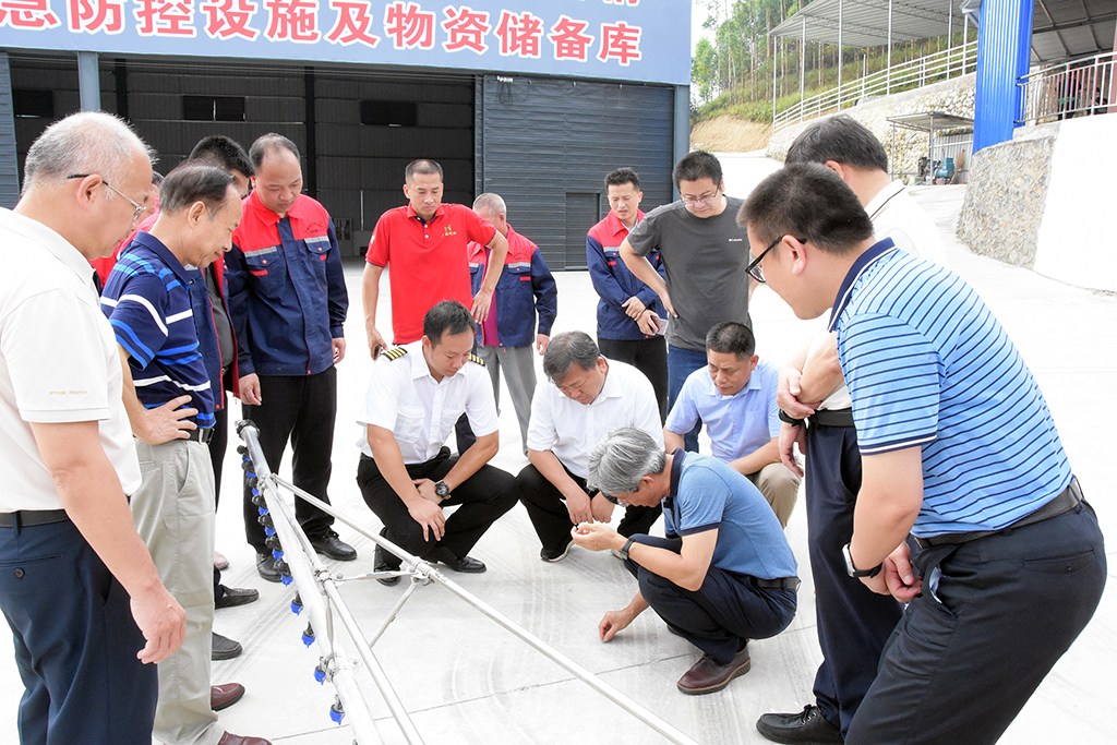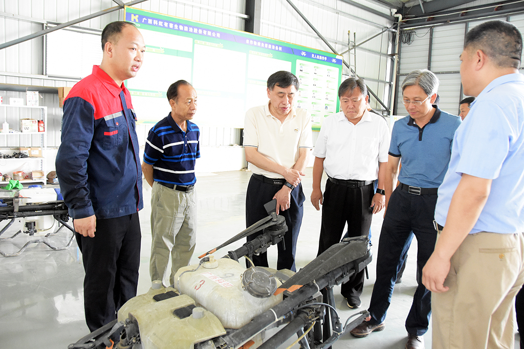 調(diào)研組一行實(shí)地察看國(guó)家(廣西科虹)重大病蟲疫情區(qū)域應(yīng)急防控設(shè)施及物資儲(chǔ)備庫(kù),認(rèn)真聽取項(xiàng)目全面工作匯報(bào),查看了直升機(jī)、無(wú)人機(jī)等設(shè)備,并召開調(diào)研座談會(huì)。