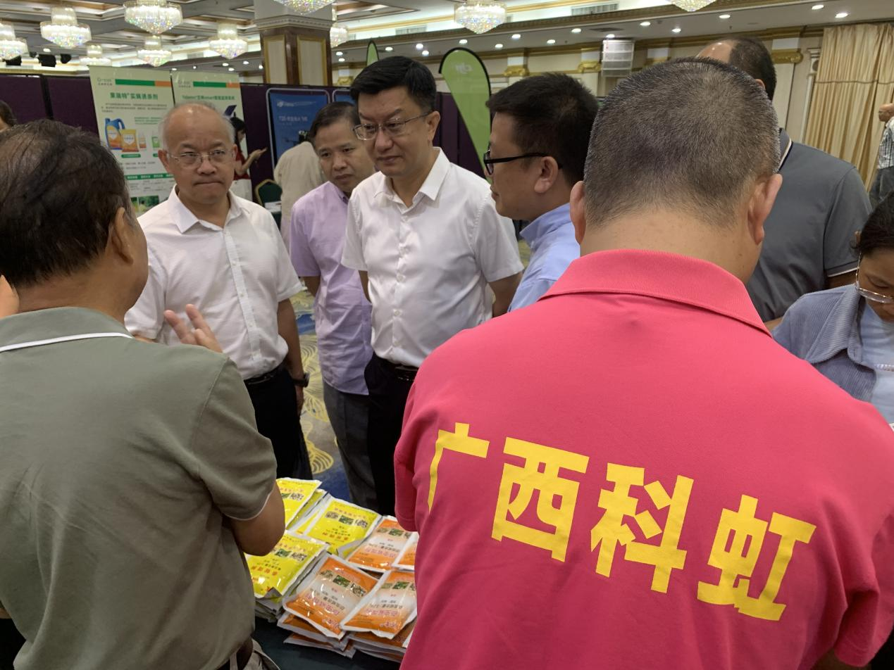 會(huì)議期間,自治區(qū)黨委農(nóng)辦專職副主任、自治區(qū)農(nóng)業(yè)農(nóng)村廳黨組成員韋波率隊(duì)到科虹公司展臺(tái)現(xiàn)場(chǎng)視察和指導(dǎo)工作。在詳細(xì)了解了科虹公司自主研發(fā)的紅火蟻專用藥等綠色防控產(chǎn)品開發(fā)情況后,韋主任高度評(píng)價(jià)了科虹公司在技術(shù)研發(fā)、成果轉(zhuǎn)化等方面取得的成績(jī),并對(duì)科虹公司的未來發(fā)展提出了寶貴的意見和建議。他希望科虹公司能夠繼續(xù)保持創(chuàng)新驅(qū)動(dòng)的發(fā)展思路,加強(qiáng)技術(shù)研發(fā)和人才培養(yǎng),提高企業(yè)的核心競(jìng)爭(zhēng)力。