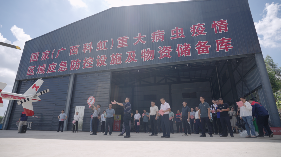 在科虹公司應(yīng)急儲(chǔ)備庫(kù),總經(jīng)理肖志科向與會(huì)代表詳細(xì)介紹了應(yīng)急儲(chǔ)備庫(kù)的建設(shè)背景、功能定位、投資規(guī)模、防控設(shè)施、物資儲(chǔ)備以及當(dāng)前運(yùn)行情況。肖志科總經(jīng)理表示,應(yīng)急儲(chǔ)備庫(kù)是國(guó)家藏糧于地藏糧于技專項(xiàng)——?jiǎng)又参锉Wo(hù)提升工程重點(diǎn)項(xiàng)目,由廣西壯族自治區(qū)植保站、科虹公司共同建設(shè)。項(xiàng)目建設(shè)藥械、農(nóng)藥運(yùn)輸工具等物資儲(chǔ)備庫(kù)面積2227.06㎡,購(gòu)置大型載人農(nóng)用施藥直升機(jī)等大中型防治設(shè)備及轉(zhuǎn)運(yùn)運(yùn)輸、遠(yuǎn)程指揮調(diào)度和維修設(shè)備等48臺(tái)(套)。項(xiàng)目建成后可直接服務(wù)于地方農(nóng)業(yè)生產(chǎn),提高防治效果、效率,減少農(nóng)藥使用量、降低防治成本。本項(xiàng)目加上科虹公司原有的防治能力,整體可形成25萬(wàn)次畝以上的日防治能力 ,全年專業(yè)防治化面積可達(dá)3000 萬(wàn)畝次以上。
