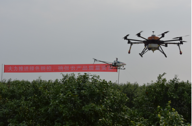 圖三、科虹公司的無人機(jī)在現(xiàn)場(chǎng)做噴藥展示。