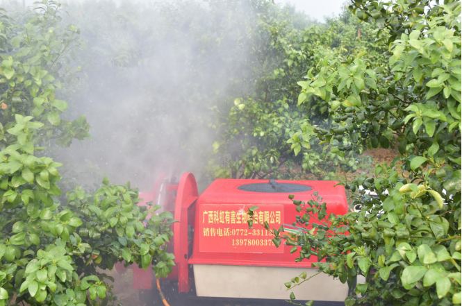 圖四、科虹的新式大型自走式噴藥機(jī)在現(xiàn)場(chǎng)做噴藥展示。