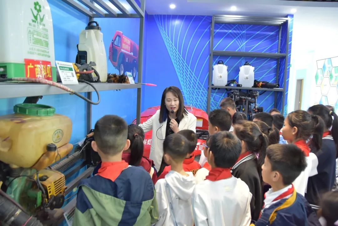 在館內(nèi),同學(xué)們被各種有趣的展示吸引,每一個展區(qū)都是同學(xué)們眼中的寶藏,大家看得目不轉(zhuǎn)睛。在講解紅火蟻的防治知識時,同學(xué)們簇擁在講解員周圍,眼中閃爍著好奇的光芒,不斷詢問各種問題,甚至在講解結(jié)束后,還在原地討論。在互動體驗區(qū)更是熱鬧非凡,同學(xué)們興致勃勃地參與互動屏體驗,現(xiàn)場氣氛活躍。走到有害生物防治工具展示區(qū),同學(xué)們興奮地向工作人員詢問使用方法,感受防治有害生物的奇妙。