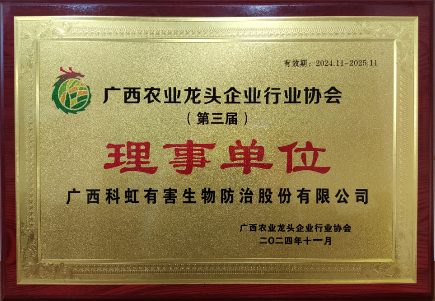 近日,經(jīng)廣西農(nóng)業(yè)龍頭企業(yè)行業(yè)協(xié)會(huì)審批,廣西科虹有害生物防治股份有限公司成為廣西農(nóng)業(yè)龍頭企業(yè)行業(yè)協(xié)會(huì)第三屆理事單位,公司總經(jīng)理肖志科擔(dān)任廣西農(nóng)業(yè)龍頭企業(yè)行業(yè)協(xié)會(huì)第三屆理事。