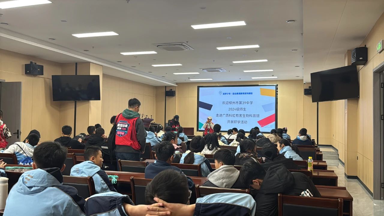12月15日上午,由柳州國(guó)旅研學(xué)部?追夢(mèng)少年工作室?guī)ш?duì),柳州市第三十九中學(xué)2024級(jí)師生來(lái)到科虹有害生物科普館,開(kāi)展“綜合素質(zhì)教育系列課程”研學(xué)。