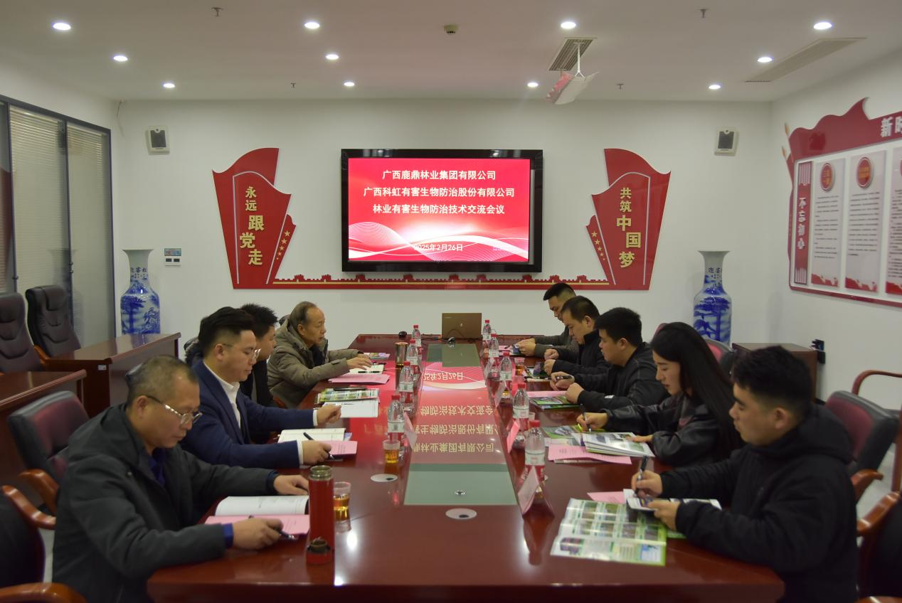 近日,廣西鹿鼎林業(yè)集團(tuán)有限公司總經(jīng)理廖長(zhǎng)琨率隊(duì)到廣西科虹有害生物防治股份有限公司,雙方就林業(yè)有害生物防治技術(shù)展開深入交流,旨在加強(qiáng)合作,共同提升林業(yè)生態(tài)保護(hù)水平。
