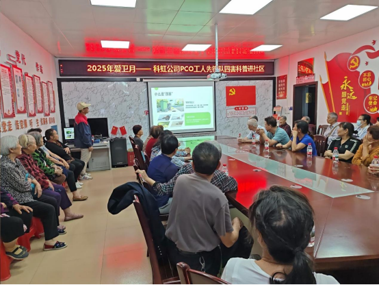 在活動現(xiàn)場,由六位成員組成的廣西科虹PCO部‘工人先鋒號班組’前往柳州市柳北區(qū)雅儒街道廣躍社區(qū),開展了一系列豐富多彩的活動。他們利用生動的PPT在室內(nèi)進行講解和交流,室外則展示宣傳海報并分發(fā)宣傳單頁,同時現(xiàn)場展示防制技能,并向居民贈送家庭必備的防制藥品。