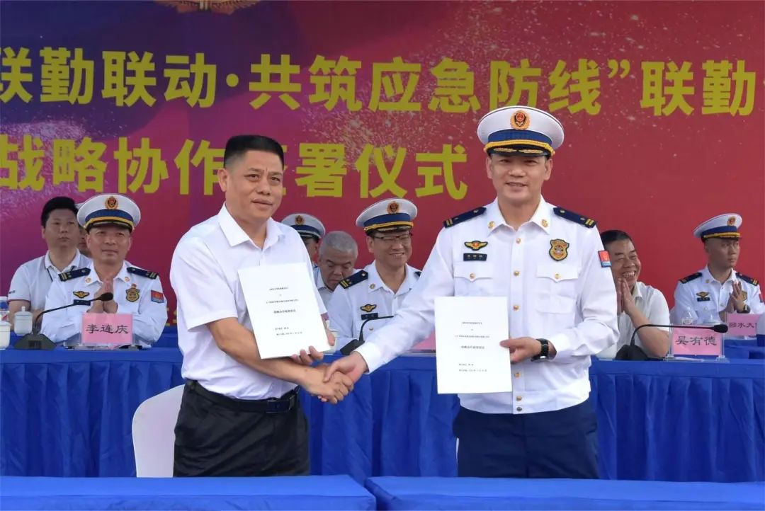 在活動(dòng)現(xiàn)場,各方代表齊聚柳州市消防救援支隊(duì)訓(xùn)練基地,在莊重的聯(lián)勤聯(lián)動(dòng)協(xié)議簽訂儀式上,柳州消防救援支隊(duì)與包括我司在內(nèi)的9家單位正式簽署協(xié)議。此次協(xié)議涵蓋裝備支援、醫(yī)療協(xié)作、空中投送、物資保障等多領(lǐng)域,明確“平戰(zhàn)結(jié)合”響應(yīng)機(jī)制,為今后的應(yīng)急救援工作奠定了堅(jiān)實(shí)的合作基礎(chǔ)。