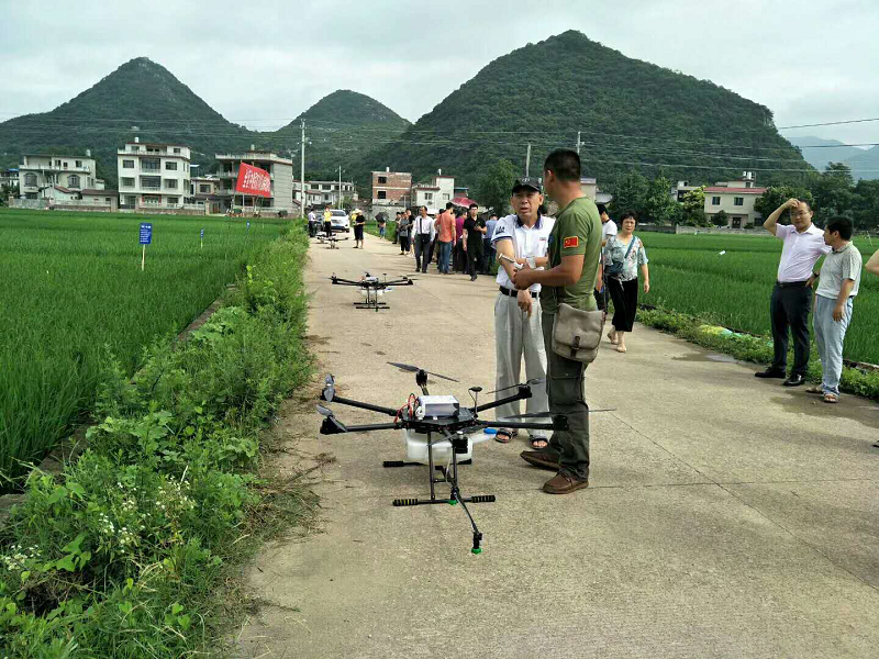 圖六、王華生副站長(前正面者)了解無人機飛防情況。