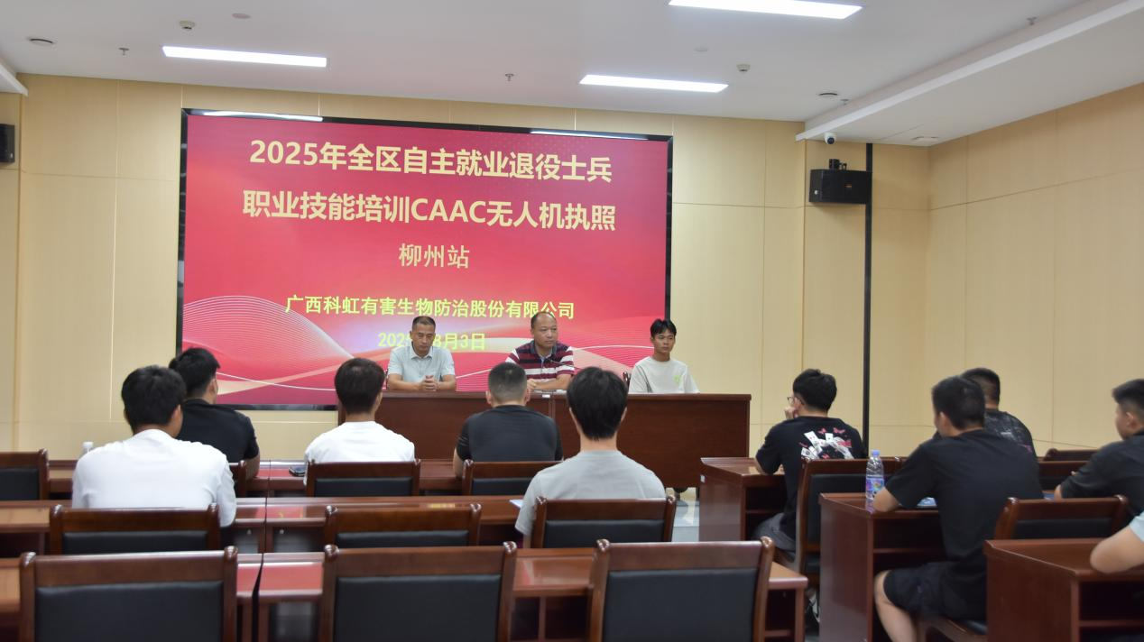 為積極響應(yīng)國家大力發(fā)展低空經(jīng)濟號召,切實提升退役士兵就業(yè)競爭力,8月3日,由廣西壯族自治區(qū)退役軍人事務(wù)廳聯(lián)合廣西科虹有害生物防治股份有限公司舉辦的2025年全區(qū)退役士兵職業(yè)技能CAAC無人機執(zhí)照培訓(第一批)在廣西科虹有害生物防治股份有限公司正式開班,吸引了全區(qū)二十余名退役士兵報名參加。