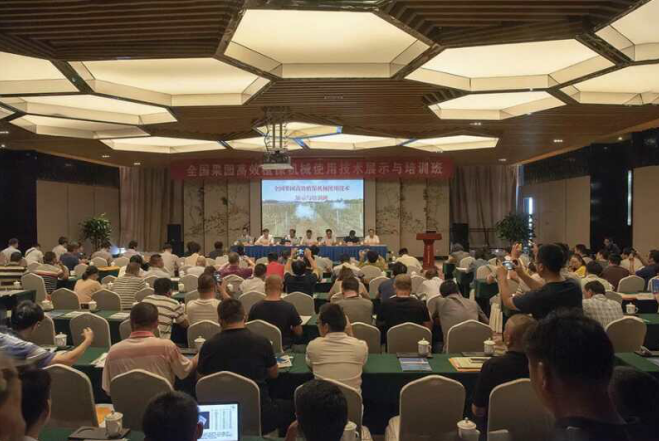 當(dāng)日上午現(xiàn)場(chǎng)觀摩,與會(huì)人員先后到大戶莊園果園綠色防控示范基地和招遠(yuǎn)市順豐植保專業(yè)合作社進(jìn)行觀摩了解果園高效植保機(jī)械推廣和病蟲害綠色防控, 8家植保器械企業(yè)在大戶莊園現(xiàn)場(chǎng)演示了果園高效植保機(jī)械使用技術(shù)。下午室內(nèi)技術(shù)培訓(xùn)由 趙清主持,首先是專家講座,中國農(nóng)業(yè)大學(xué)宋堅(jiān)利副教授分別從果園風(fēng)送噴霧機(jī)的機(jī)型、施藥質(zhì)量檢測(cè)和應(yīng)用,以及植保無人機(jī)在果園病蟲害防治中的應(yīng)用等幾個(gè)方面進(jìn)行了授課; 然后是參會(huì)8家企業(yè)代表分別介紹了果園植保機(jī)械應(yīng)用特點(diǎn)及其使用技術(shù)。最后王鳳樂進(jìn)行總結(jié)并要求:1、要緊跟農(nóng)業(yè)轉(zhuǎn)型升級(jí)、鄉(xiāng)村振興戰(zhàn)略步伐,全力推進(jìn)果樹病蟲害專業(yè)化統(tǒng)防統(tǒng)治;2、積極探索統(tǒng)防藥械高效化,服務(wù)方式多元化,技術(shù)模式集成化的植保社會(huì)化服務(wù)機(jī)制;3、推進(jìn)農(nóng)企合作;4、加大果園高效植保機(jī)械應(yīng)用技術(shù)培訓(xùn)。
