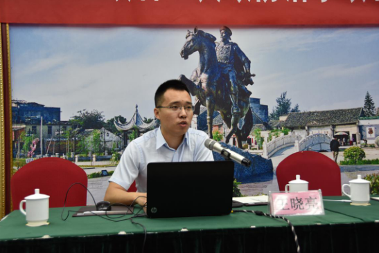 (圖三:全國農(nóng)技服務(wù)中心高級農(nóng)藝師王曉亮在培訓(xùn)會上作項目情況介紹)