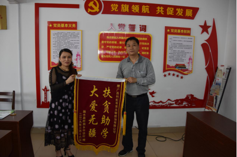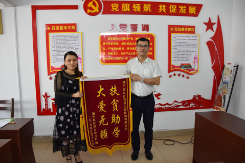 2019年4月9日,柳州市魚峰區(qū)榮軍街道辦事處主任陸浪、榮軍街道辦駐村幫扶干部劉軍一行將印有“扶貧助學(xué)、大愛無疆”的錦旗送到廣西科虹有害生物防治有限公司,以此感謝廣西科虹公司對融水縣桿洞鄉(xiāng)中講村多名貧困學(xué)子的愛心助學(xué)。