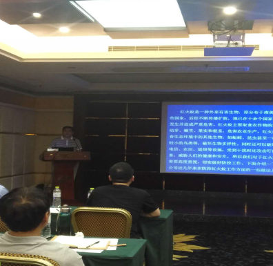 圖一 科虹公司肖志科總經(jīng)理在做紅火蟻防控技術(shù)交流