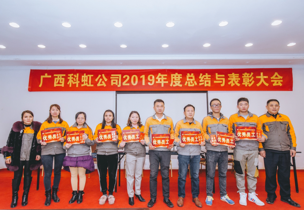 在科虹公司2019年年度總結與表彰大會上,黃大亮總經理助理做了年度總結。肖志科董事長總結2019年的成績,提出2020年的工作計劃,并為全體員工送上新春祝福。公司領導與各分公司領導簽訂合作承諾書,并頒發(fā)了優(yōu)秀員工獎、優(yōu)秀集體獎,鼓勵大家在新的一年繼續(xù)努力,做出新的貢獻。