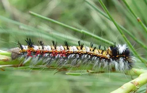 馬尾松毛蟲,屬鱗翅目、枯葉蛾科、松毛蟲屬的一種昆蟲,主要為害馬尾松,亦為害黑松、濕地松、火炬松,是我國歷史性森林害蟲。以幼蟲取食松針,大發(fā)生時連片松林在數(shù)日內(nèi),即可被蠶食精光,遠看枯黃、焦黑,如同火燒一般,常稱為“不冒煙的森林火災”,被害松林,輕者影響生長,重者造成松樹枯死。馬尾松毛蟲危害后容易招引松墨天牛、松縱坑切梢小蠹、松白星象等蛀干害蟲的入侵,造成松樹大面積死亡。
