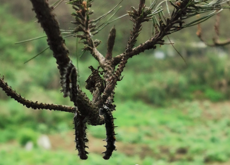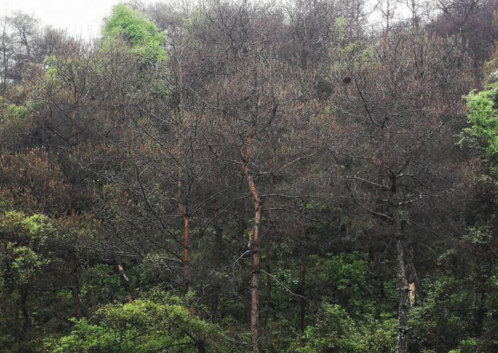 根據(jù)今年鐘山縣對馬尾松毛蟲蟲情調(diào)查監(jiān)測結(jié)果顯示,越冬代松毛蟲發(fā)生面積為2000多公頃,平均有蟲株率高達95%以上;各林分平均蟲口密度一般在85-500條/株,最高單株蟲口密度達2000條/株以上。發(fā)生形勢極為嚴峻,如不及時防治,將會造成大面積成災。