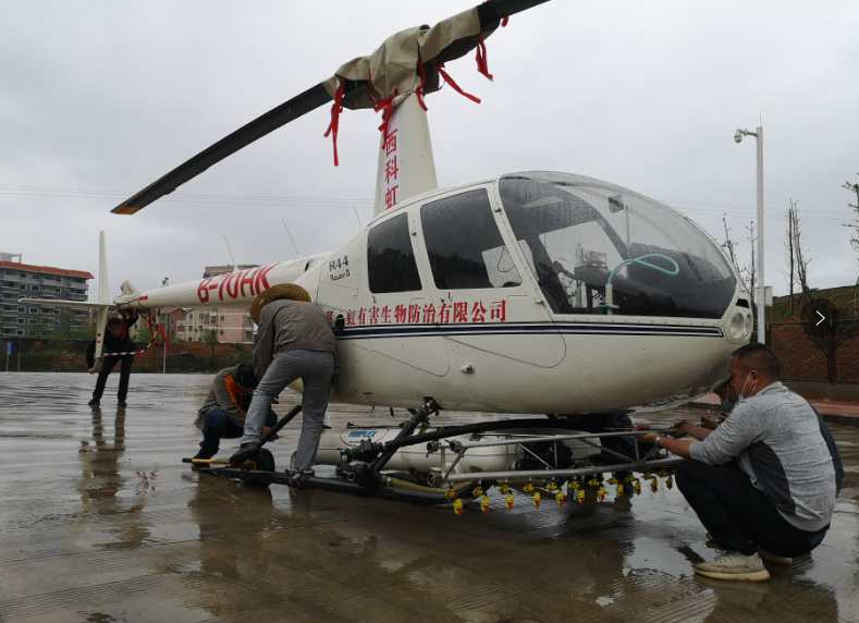 廣西科虹公司具有豐富的農(nóng)林病蟲害防治經(jīng)驗和先進的防治設(shè)備。現(xiàn)擁有的美國羅賓遜公司R44型直升機,可實施航空噴灑農(nóng)藥進行飛防作業(yè)。
