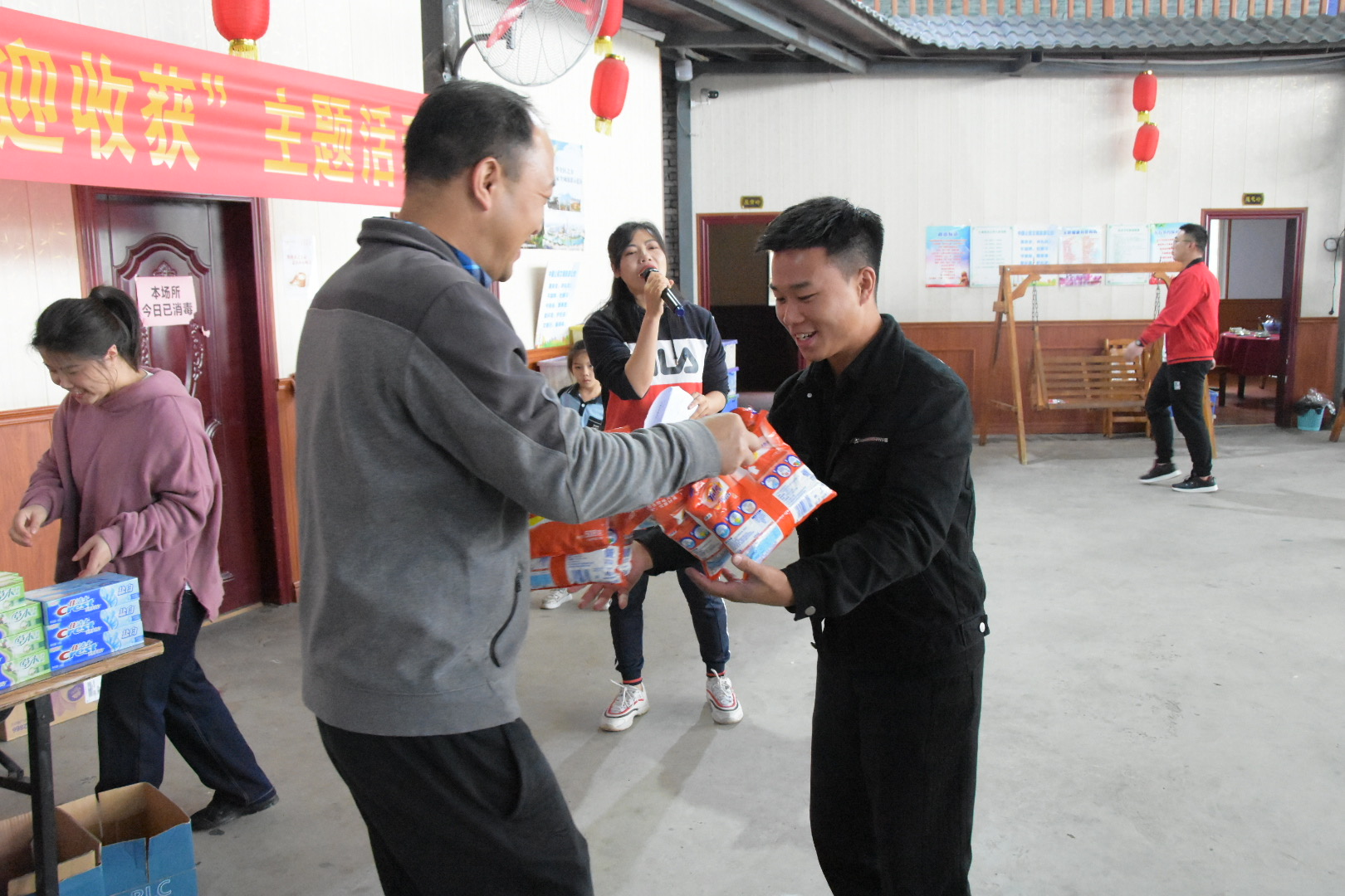 科虹公司工會主席楊自華給員工發(fā)放活動紀(jì)念品。