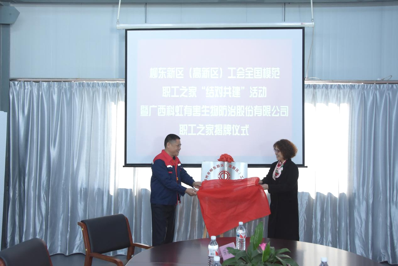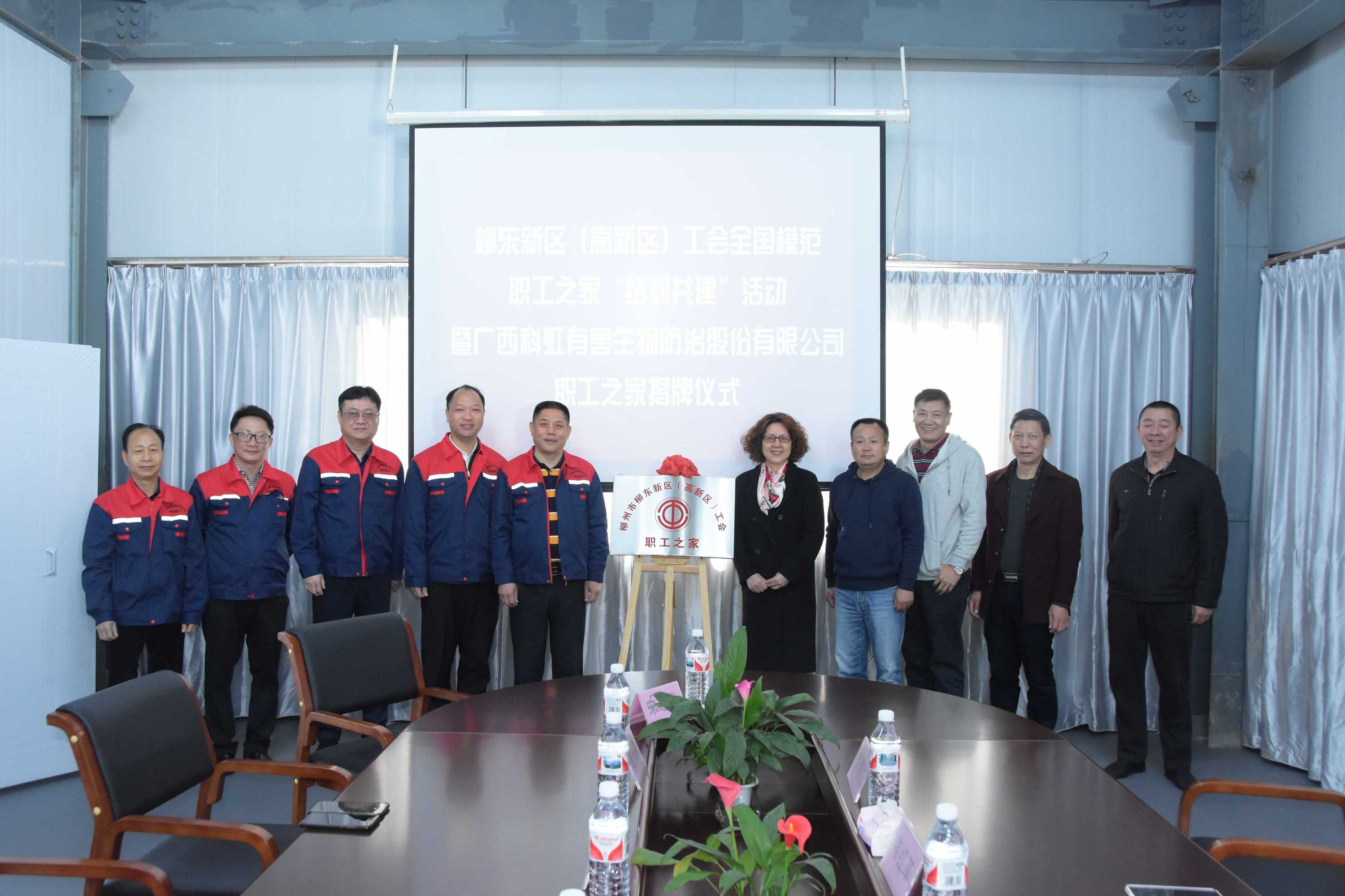 12月1日上午,柳州市總工會(huì)黨組成員、副主席韋紅革一行與廣西柳州市柳東新區(qū)(高新區(qū))工會(huì)相關(guān)領(lǐng)導(dǎo)一同前往廣西科虹有害生物防治股份有限公司開展模范職工之家“結(jié)對(duì)共建”活動(dòng)?;顒?dòng)現(xiàn)場(chǎng)還舉行了廣西科虹有害生物防治股份有限公司工會(huì)職工之家的揭牌儀式。科虹公司總經(jīng)理肖志科、工會(huì)主席楊自華等領(lǐng)導(dǎo)出席活動(dòng)。